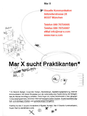 Praktika bei Mar X dauern mindestens 3 Monate. Kontakt: Xuyen Dam, x.dam@mar-x.com